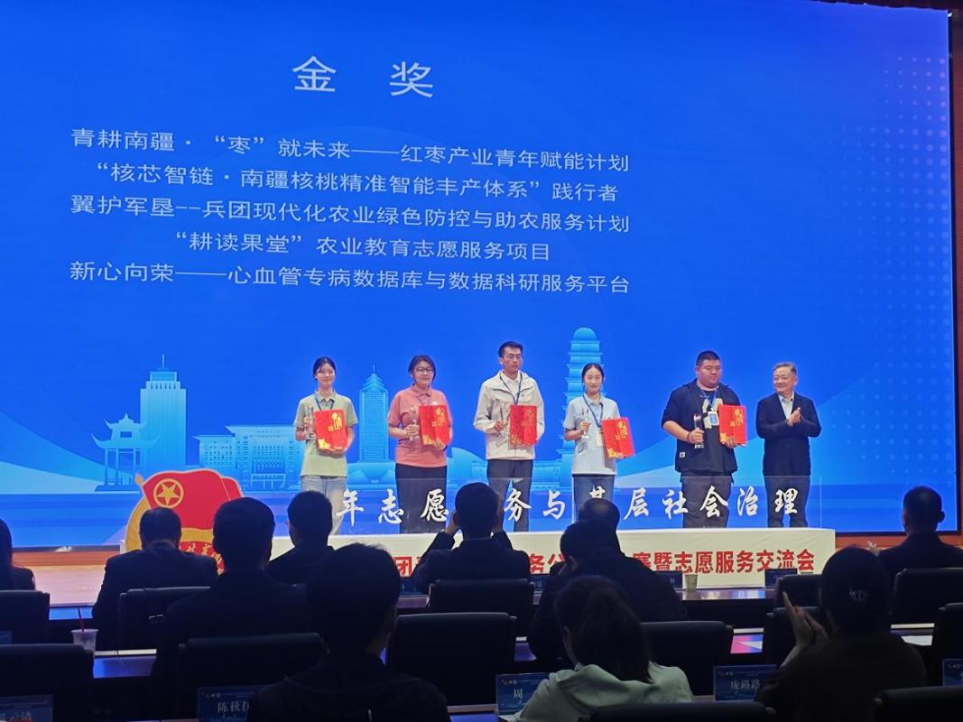 4月21日至22日,第八届新疆生产建设兵团青年志愿服务公益创业赛暨志愿服务交流会在新疆理工职业大学落幕。永利yl23411果树系研究生支部党员孙金伟、王静怡同志牵头,新疆昆玉红枣科技小院申报的“青耕南疆・‘枣’就未来——红枣产业青年赋能计划”项目,新疆温宿核桃科技小院申报的“核芯智链·南疆核桃精准智能丰产体系”践行者在63个参赛项目中脱颖而出,双双斩获金奖,彰显了支部党员扎根南疆、服务基层的担当与新时代研究生党员的青春风采。