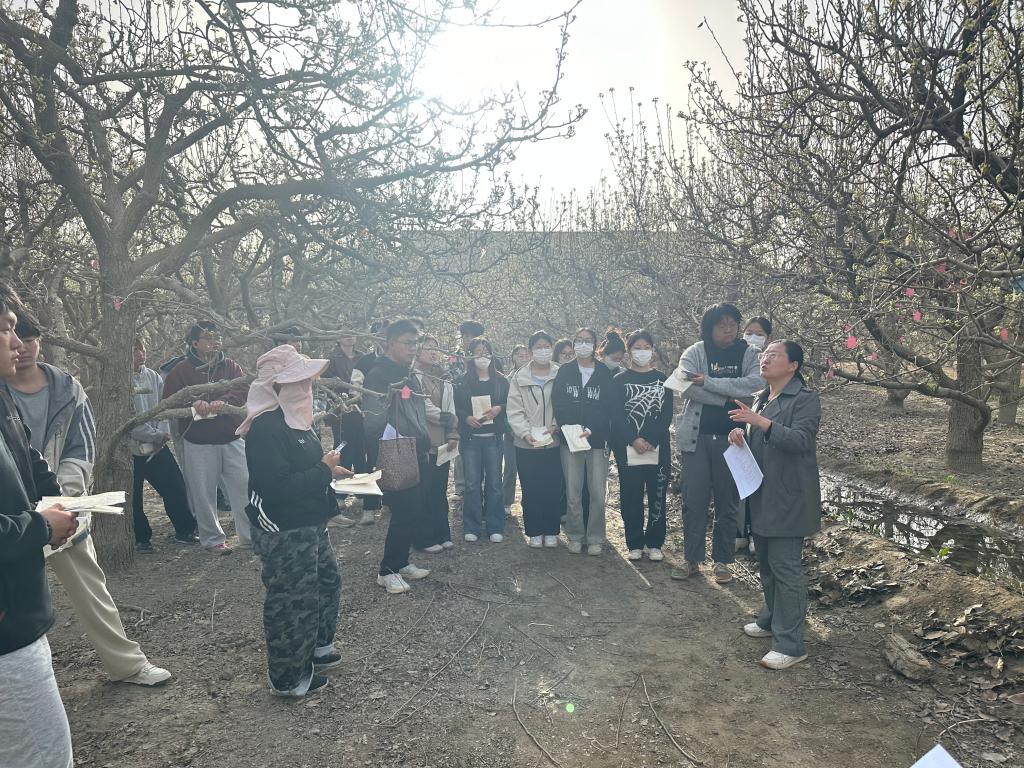 在杂交育种环节,林敏娟老师向同学们讲解了果树杂交育种的目的、流程及关键技术要点,重点示范了花粉采集、去雄、授粉、套袋隔离等操作步骤,强调了操作过程中的无菌规范与细节把控。同学们手持记录本,认真记录操作要点,随后在老师的指导下完成了授粉实操,对园艺育种工作的严谨性与科学性有了更深刻的认识。