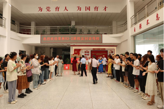 下午16:40,果林83-2班员工乘大巴抵达园林楼,王合理、依马木·麦麦提、蒋学玮及师生代表共同到楼外热情迎接。