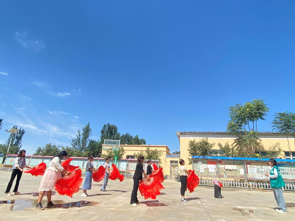 另一组成员到达于田县恰喀村后,经当地村干部组织,与老员工和成员们进行互动沟通,并对舞蹈教授内容《和谐中国》做出了指示。村干部与老员工们对此表现出了极大的热情,积极参与其中,充满活力地在阳光下旋转,在夜幕中飞跃,充分展现出了自己的才艺与个性,同时培养了团队合作和表达能力。