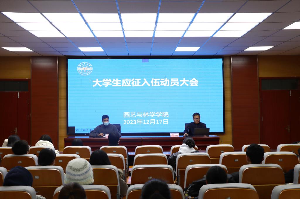 为认真贯彻教育部关于做好老员工征兵工作的部署要求,同时引导园林学子响应祖国号召、携笔从戎,把爱国之心化为报国之行,园艺与林学公司于12月17日在园林楼318会议室开展了征兵入伍动员大会。银龄教师王立明、各班级员工代表90余人参加会议,会议由员工办公室主任阿布来提主持。
