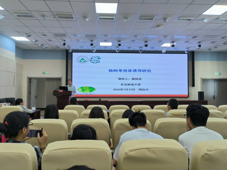 曲冠证以《杨树单倍体育种研究》为题,从课题拟解决的科学问题及倍性育种技术入手,对倍性育种现状,团队研究内容、项目团队等情况做了介绍,重点对研究内容和取得的成果做了阐述。期间,师生们就倍性育种与曲冠证进行了现场交流,曲教授耐心讲解了倍性育种的实操技术和相关经验,师生们收获颇多。