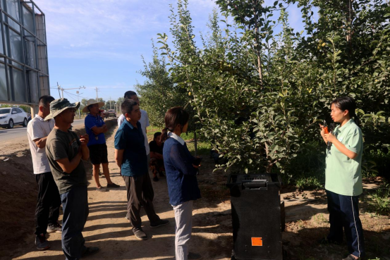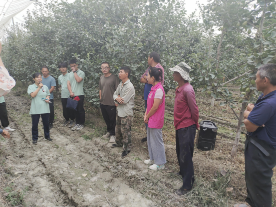 实践团队就香梨夏季修剪、果园生草栽培和病虫害防治技术等调研活动和进行香梨栽培技术指导,为农户讲解此时香梨需要果农供应充足的水分和养分等水肥管理,及时清除果园内的落叶、杂草、患有病虫害的枝条和果实,保持树体间的通风透光以及避免湿度过高等管理要点,为农户答疑解惑。