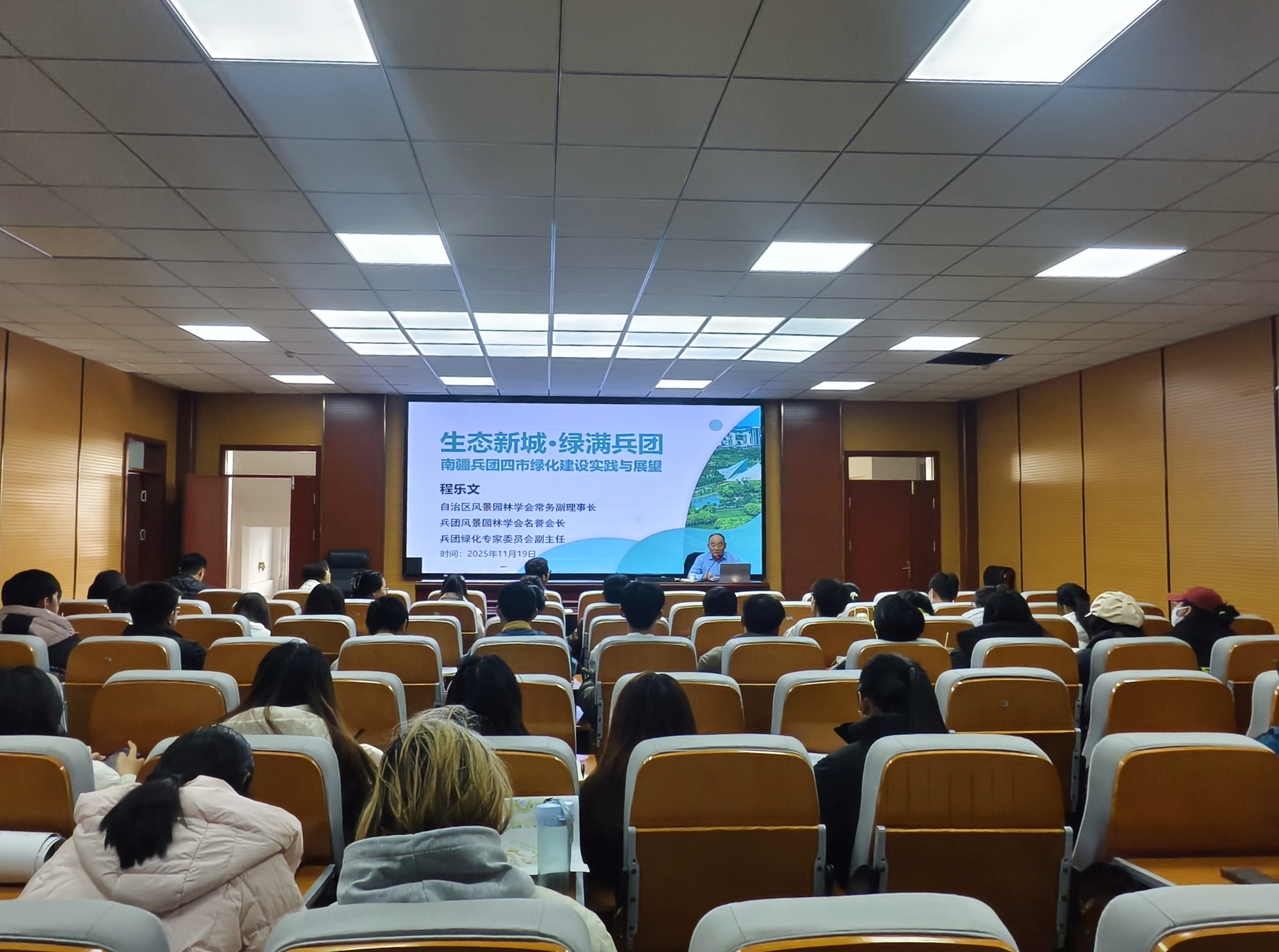 11月19日,兵团第一师阿拉尔市副市长程乐文应邀莅临公司,在318会议室为林学园林系师生作了题为《生态新城·绿满兵团——南疆兵团四市绿化建设实践与展望》的专题讲座。报告由学院副经理吕瑞恒主持,公司师生共同参加。