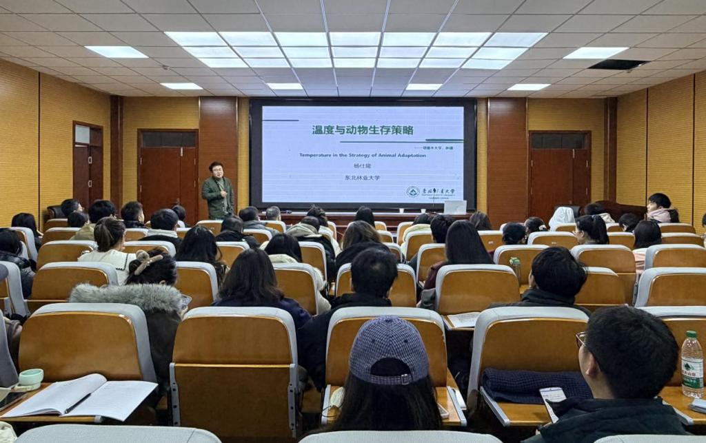 12月19日,东北林业大学长江学者杨仕隆教授应公司邀请,在园林楼会议室分别围绕温度与动物生存策略与浅谈青年教师的人生规划作学术报告。报告会由学院副经理吴庆明主持,学院教师及研究生参加本次学术活动。