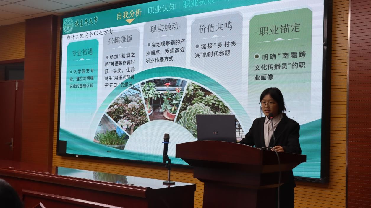 比赛采用“PPT汇报+现场答辩”的形式,选手们紧扣自我认知、行业洞察、职业目标等五大核心维度,系统阐述个人职业规划。不少选手立足园林专业特色,聚焦生态修复、乡村绿化振兴等方向,将短期学业计划与长期职业发展相结合,尽显新时代学子的责任与远见。